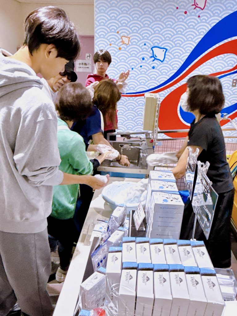 最後に、一つずつ丁寧に人の目で異物や汚れがないかを厳しくチェックし、箱詰め。