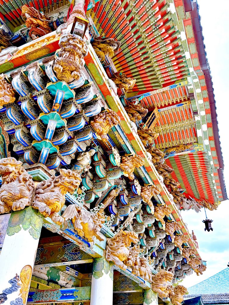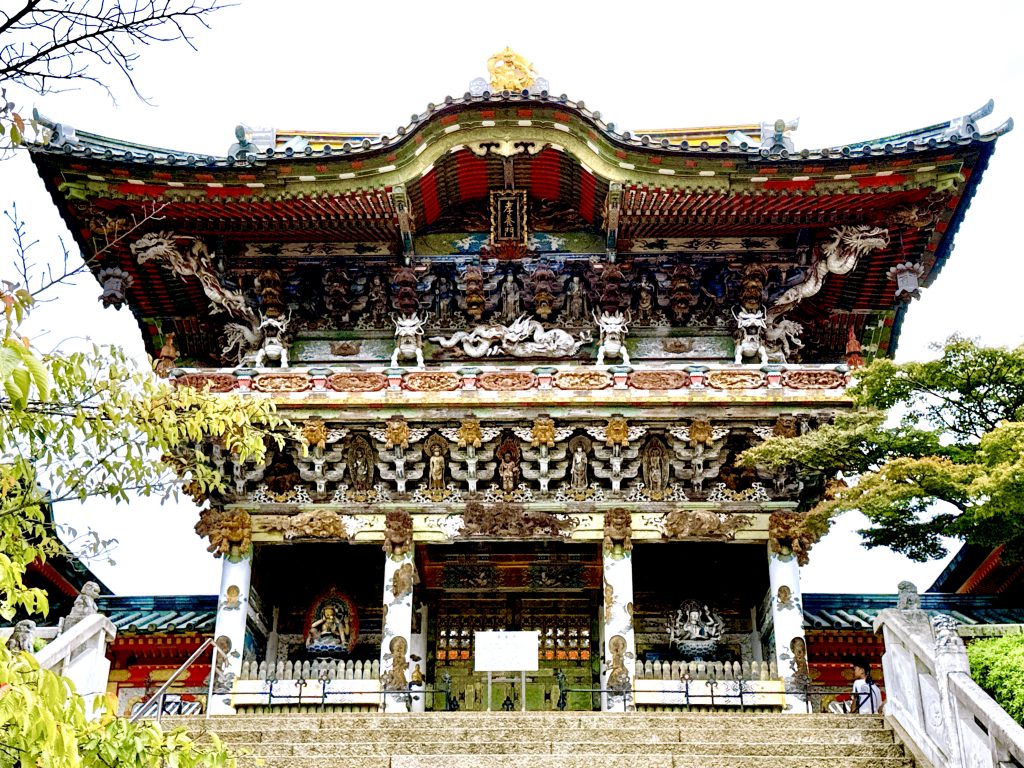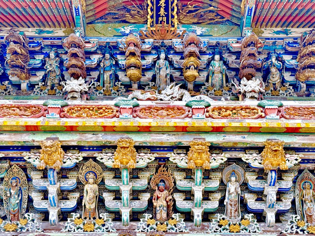 原作は日光東照宮陽明門。当寺の建築においては唯一その実測図が用いられており、各部の比例も一致。10年の歳月をかけて完成。相違は各部の装飾の彫刻と彩色に多く、下層柱の金銀泥彩色を施した聖衆来迎の浮彫、組物表面に施した宝相華と繧繝(うんげん)彩色など。