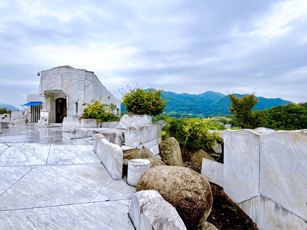 広さ5,000平方メートルにもおよぶ白い大理石の庭園で、世界を舞台に活躍されている彫刻家 杭谷一東(くえたにいっとう) 氏にその制作を依頼。